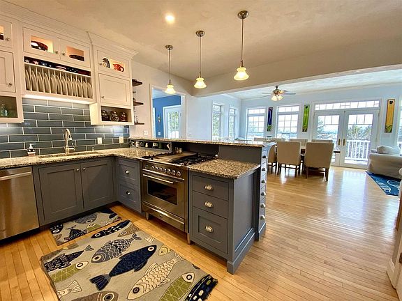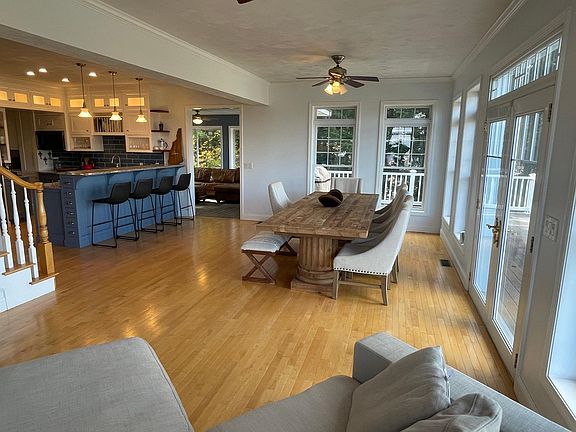 This is a spacious house with 3Bedrooms & 3 Full Baths, Huge wrap-around Deck with SPECTACULAR VIEWS of Lake Winnipesaukee, with Amazing SUNRISES ! There's a detached 2 car Garage for storage to go along with the 2 car garage in the main house. The first floor has a Primary BR Suite (w/ Walk-in-closet, full bathroom w/ double siink, large shower ) &Laundry The main floor also has the Brand New Kitchen & Sun splashed open Living room / Dinning room with Gas fireplace, wall to wall windows and French doors leading to the wrap-around deck . There's also a TV Room off the living room. the Upper floor has 2 more bedrooms with great views and a full bathroom. The lower level of the house has a Brand New Full Bathroom ( with shower ), Wet bar, Great room ( with Pool Table) and 3 Built-in Beds for guests. The house is available to rent part furnished or unfurnished. 12 month lease or till sometime next summer