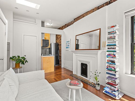Your cozy perch features exposed brick, clever storage, wood floors, a decorative fireplace, and updated kitchen and bathroom.