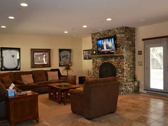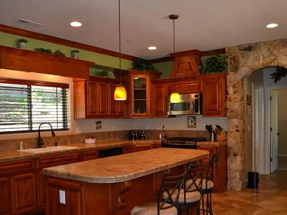 Lovely custom home with open floor plan. Walk in pantry, downstairs, bed & bath; river rock fireplace with built ins for tv & surround sound system in living room. Vaulted ceilings in master bedroom.Gorgeous outdoor areas with a private putting green, patio & outdoor kitchen.