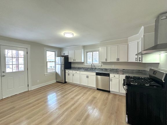 Available after a complete renovation, this unit is ready for anyone looking to move into a brand-new space. This first floor apartment is bright with lots of windows and natural light. The unit features a high-end kitchen with granite countertops, stainless appliances and a large private porch overlooking the spacious back yard. The open floor plan creates a comfortable main living space with lots of space, particularly for a two bedroom unit. There is built in storage, in-unit laundry and off-street parking available. This house is located on a peaceful side street but just minutes away from downtown Rochester's bars and restaurants, making it an ideal location for anyone looking for the best of city living. Renters pay for gas & electric. Owner pays for trash and lawn care. First month's rent due and security deposit is due at signing. No smoking allowed. Small dogs and cats permitted for an additional security deposit.
