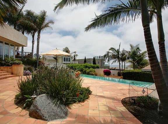 TWO CONTIGUOUS LOTS RUNNING EAST & WEST,VERY PRIVATE WALLED FRONTAGE with the house on one lot and the award-winning pool/spa on the other, 3RD HOUSE FROM THE OCEAN, stunning whitewater ocean & sunset views. This soft contemporary has many sets of doors opening the home up to the outside, a seamless blending of indoor/outdoor true Del Mar living & entertaining. New Downsview Honduran mahogany gourmet kitchen w/topline appliances overlooks a fireside living room, all w/hardwood floors.Master..supplement Courtesy of CK Properties Broker.