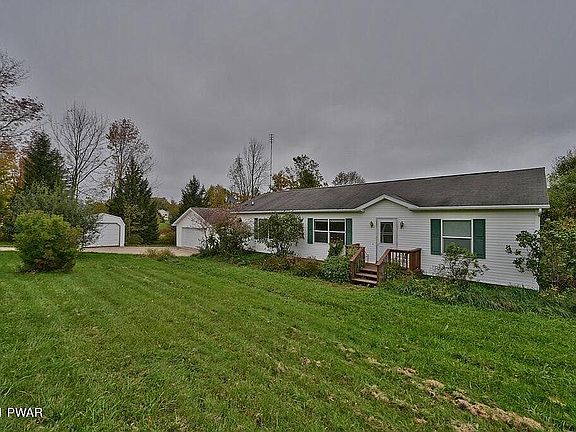 Spacious ranch home located on 2 acres offering complete privacy, surrounded by privately owned large acreage parcels giving this property scenic views of a pastoral setting. The eastern view is complete wilderness. This 3 bedroom, 2 bath home has a lot to offer including a master bedroom with master bathroom, dining area and eat-in-kitchen, a rear deck, a detached garage and shed too. Full unfinished basement, concrete driveway. The property also has a fragrant garden in many Rosa Rugosa and lilacs, white pine trees, Norway spruce, Hawthorn, Pussy Willow. The Pergola has mature green concord grapes.