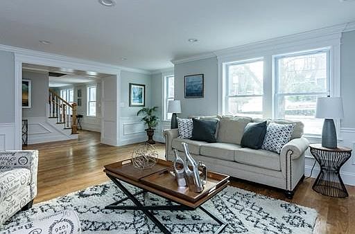 Boasting a spacious open floor plan, this newly renovated Colonial has been thoughtfully designed with an emphasis of flow, sight lines and comfort, radiating a calming and restorative energy. Original beauty meets contemporary design with designer accents throughout. Featuring gleaming hardwood floors ready for an owner's preferred touch and an entertainer's kitchen complete with granite counter tops, brand new stainless steel appliances and an abundance of cabinetry. Enjoy the luxury of not one, but two beautiful and expansive master suites characterized with private master bathrooms and spacious custom built-in closets. Additional features include a large bonus lower level living space, second floor laundry room, mudroom with custom built-ins and a first floor private office. With a combination deck and patio in the back yard, entertaining guests is made easy both inside and out!