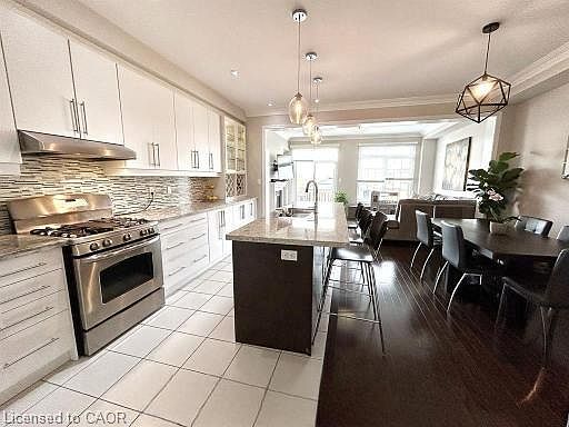Welcome to this stunning modern townhouse in the heart of Brampton West, offering nearly 2,000 sq. ft. of beautifully designed living space. This bright and spacious 3-bedroom, 3-bathroom home features a custom luxury kitchen with elegant finishes, perfect for both family living and entertaining.The open-concept main floor seamlessly connects the kitchen, dining, and living areas, highlighted by a cozy fireplace and large windows that fill the space with natural light. Upstairs, generous bedrooms provide comfort for all family sizes, while the primary suite offers a private retreat with ample closet space.Outside, enjoy summer evenings in the private backyard with gazebo, or take advantage of the extended driveway that comfortably fits two cars, in addition to the single-car garage-providing three parking spaces in total.Located in a vibrant and family-friendly community, you'll love the convenience of nearby parks, schools, shopping, restaurants, golf courses, trails, and public transit.