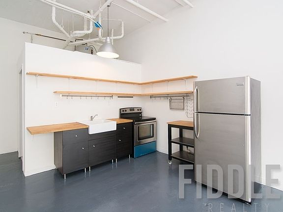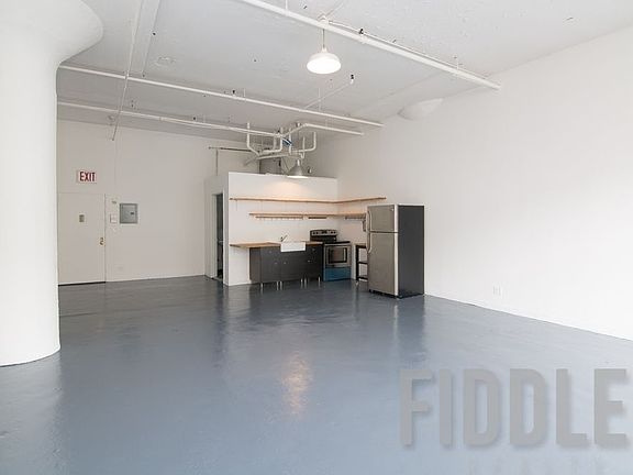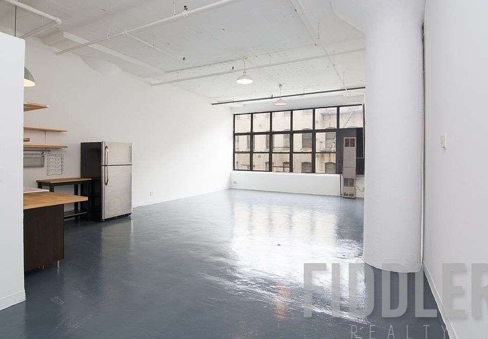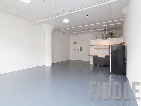 Spacious open loft available in a well-established live/work building in Clinton Hill, near the line with Williamsburg and Bed-Stuy. 5 minutes to the G train at either Bedford/Nostrand or Myrtle/Willoughby. Actual apartment photos! Close to the Pratt Institute, several grocery stores, great restaurants, bars, and a giant Home Depot is a block away. Available now. No fee. Contact Fred to view. This is a large open loft with high ceilings and a full wall of windows. Newly renovated kitchen and bath. Solid polished concrete floors. The kind of space that has become increasingly hard to find in Brooklyn. Clean, well managed building. Laundry rooms on every floor. Elevator with keyed access for security. Live-in superintendent and on-site property management. Secured package room for deliveries. Freight elevator and access to a roof with amazing views. Available now. Contact Fred to view