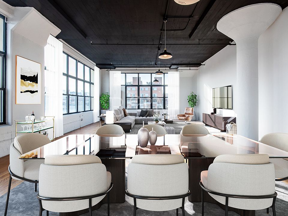 The homes at 144 Spencer are the perfect representation of true Brooklyn industrial artist lofts. It doesn't get any better than unit #601. This beautiful 1000+ sqft southwest facing, corner unit is one of the most desirable lofts not just in the building, but in all of Clinton Hill. The space, which is virtually staged, is defined by polished hardwood floors, tall 12 foot high ceilings, exposed piping and columns, oversized factory windows, and a view of the One World Trade Center to top it all off. Outside the unit, there is keyed elevator access for each floor, laundry on each floor, a freight elevator, extra storage, and a rooftop with incredible views! The super lives in the building and the management office is on site as well with 24 hour security and package pickup during business hours. Last but certainly not least, the building is pet friendly! The building is located on the South Williamsburg/Clinton Hill border, within walking distance to Pratt Institute, Home Depot, and multiple supermarkets. The building lies between two G train stops, just a few short blocks to Bedford/Nostrand or Myrtle/Willoughby. There are plenty of shops and restaurants nearby as well including MOLOKO, Project Parlor, Beast of Bourbon, Brooklyn Kolache, and Dough Doughnuts.