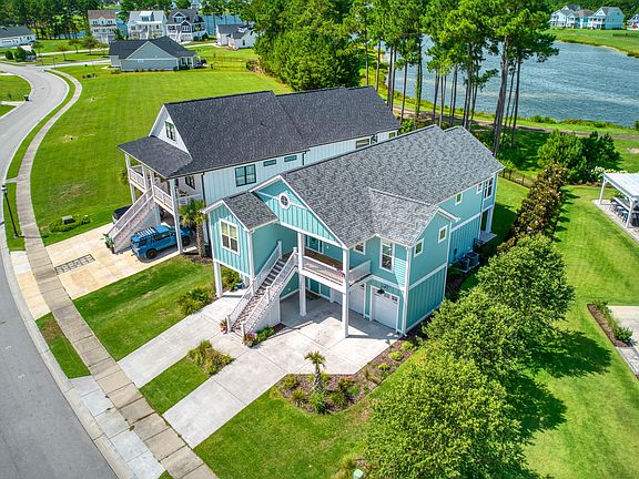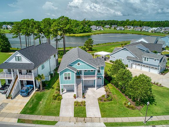 Welcome to Summerhouse on Everette Bay! Luxury living on the coast located between Jacksonville and Wilmington, as well as a very short drive to our area beaches! This exquisite 4 bed 3 ½ bath home located within a highly desired gated community has spectacular views of Spicer Lake and being sold fully furnished whether you are having coffee in the morning or barbecuing in the evening with your family the view is like no other. With over 3,000 square feet of living space, this home offers a beautiful front porch, large deck overlooking the lake and beautifully landscaped patio and yard for future entertaining, not to mention it boasts magnificent garage spaces which allows golf cart parking in addition. Entering the home, you will immediately notice the bright and open feel of a coastal retreat whether this home is your forever home or a place for your family to gather and enjoy what the area has to offer, this home has everything you will need. The kitchen with vaulted ceilings, beautiful countertops, upgraded lighting, solid wood cabinetry, gas range and pantry is a dream for those who love to cook or entertain. For that calm and relaxing afternoon this home has a sunroom overlooking the lake, where enjoying a good book and relaxation, it is sure to please. Off from the very exquisite living room with electric fireplace there is a storage closet, as well as half bath. The master suite is located on the primary living area floor with an en suite, walk in shower and walk in closet. Also, on this level there are two bedrooms and an additional full bath. The ground level of the home boasts a guest room with a living area and kitchenette as well as a full bath for plenty of privacy. The lower level also offers ample closet space and a laundry room. The downstairs entry gives way to the garages and a backyard patio area. Summerhouse at Everett Bay is a gated resort style community with breathtaking pool, clubhouse, lazy river, tennis courts, clubhouse, fitness area, basketball courts, walking trails and playground. Among these amenities, the neighborhood also offers a day dock and pier with access to the intracoastal waterway. Some personal items, garage items, clothes, a few pictures will not stay. Owners will provide a list of those items at request.