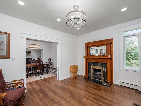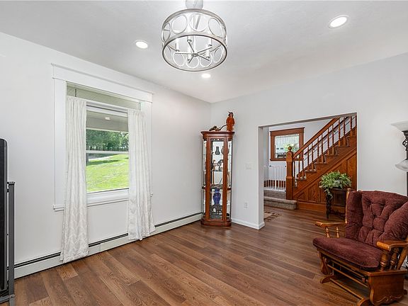 This charming residence is located on nearly 10 acres of prime land. It boasts a first-floor master suite complete with an en-suite bathroom, convenient first-floor laundry facilities, and a newer composite deck, featuring a power-retractable awning. The kitchen has been beautifully upgraded with stunning quartz countertops, new stainless appliances, custom white cabinetry equipped with soft-close drawers, and an island that serves as additional seating. The second floor includes two spacious bedrooms, a versatile bonus room that can serve as an extra bedroom or office, and a full bathroom. Additionally, the property offers an expansive garage with a workshop and a BendPak Four-Post vehicle Lift, a barn with stalls, and a steel building, providing ample space for all your vehicles and equipment.