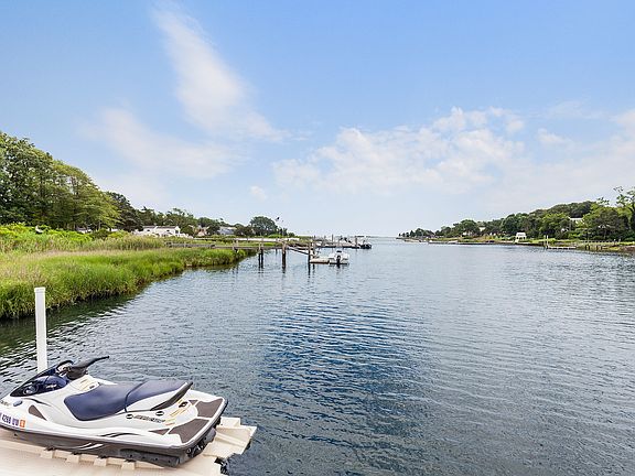 Located South-of-the-highway in Hampton Bays this Designer Owned, Newly Re-Built Waterfront Beach house with deep water dock offers the perfect Summer or Year-Round Hamptons Experience. The meticulously maintained property offers two legal structures including three bedroom, two and one-half bath house, plus legal accessory cottage. Enter the main home to enjoy your coastal living lifestyle. The open floor plan offers a light and bright dining and great room with fireplace adjacent to the state-of-the-art chef's kitchen. Choose from first floor Primary suite and additional two guest bedrooms, full bath and located on the upper level. Relax in the expansive sunroom overlooking Smith's Creek and lush, landscaped grounds with stone patios, New IPE deck, and large hot tub. Recent upgrades include custom built bar and cabinetry, custom closets in Primary bedroom, renovated baths, stylish lighting fixtures, new kitchen appliances, countertops and back splash. The legal accessory cottage, also recently renovated, comes complete with new kitchenette appliances, renovated full bath, designer lighting, loft and outdoor shower and sauna offering extra space to enjoy. Dock your boat or water toys on your private dock or take a sunset cruise in Shinnecock Bay. Exterior upgrades include New Ipe Deck, Azek fencing, new pilings and fascia on dock, landscape, and dock lighting. Just minutes to Village shops, restaurants and ocean beaches, this gorgeous property is a must see.