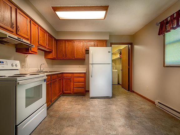 ...Charming ranch with one car attached garage. Move in ready 3 bedroom, kitchen appliances, washer and dryer too! Large fenced backyard, patio, play area and two storage sheds. Clean electric baseboard heat, roof is approximately 4 years old. Seller is leaving window air conditioners.
