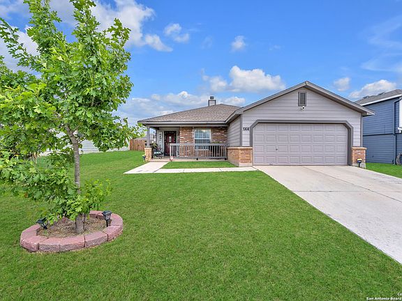 Welcome to 144 Stream Crossing, a meticulously maintained one-owner home in the highly desirable SCUCISD, zoned for Byron P. Steele High School. This move-in ready single-story offers 3 bedrooms plus a private study, ideal for a home office, playroom, or guest space, along with 2 full bathrooms. A NEW HVAC system in 2025, water heater in 2022, roof in 2017 and a maintained sprinkler system make this home a smart buy. The open-concept design features wood-like tile flooring throughout the main living areas, plush carpet in the bedrooms, and a bright, inviting layout that makes the home both stylish and functional. The spacious kitchen opens to the dining and living rooms, creating a seamless flow perfect for entertaining or gatherings. The primary suite provides a relaxing retreat with a well-appointed ensuite bath featuring a dual vanity, separate tub and shower, and generous closet space. Pride of ownership shows in every detail, from the carefully chosen finishes to the immaculate upkeep of the home. Step outside and enjoy the large covered patio, perfect for morning coffee, evening relaxation, or hosting weekend barbecues. With the convenience of nearby shopping, dining, and quick access to major highways and Randolph AFB or Fort Sam Houston, this home truly combines comfort, convenience, and lasting value. Schedule your private showing today and experience all that 144 Stream Crossing has to offer!