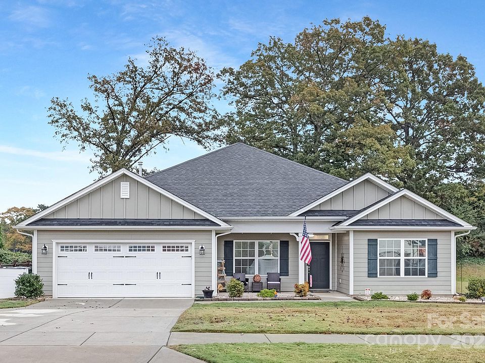 Welcome to Sanders Ridge, a thoughtfully designed community offering two neighborhood common areas with gazebos and a trail currently under construction for residents to enjoy. This beautifully maintained home combines quality craftsmanship, modern comfort, and practical upgrades throughout! One-owner 4-bedroom ranch on .27 acre lot with many upgrades such as generator wired and extended 32-feet patio added in 2023 along with a generator hookup for additional functionality. Hardie Plank concrete siding, metal-framed insulated windows. Open split-bedroom floor plan, Jack and Jill bedrooms with private entries and 9-foot ceilings. Office/bedroom with closet and 10-foot ceiling. Formal dining room has 10-inch crown molding, tray ceiling, wainscoting, and decorative posts at entry. Granite counters in kitchen and bathrooms. Vaulted ceiling and gas fireplace in main living area. Ceiling fans in all bedrooms and living room. Two linen closets. Large master bedroom with private entry. Master bathroom has crown molding, walk-in closet, water closet, and walk-in tiled shower. Home Team Pest Defense system throughout home.