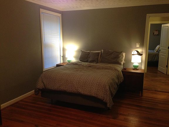 No calls or texts please. Inquiries made through this listing will be answered as quickly as possible. THE hot neighborhood in Athens! Across the street from UGA Health Sciences Campus. 2-3 blocks to Piedmont Hospital and Normaltown with a variety of great coffee shops, restaurants and bars. Easy on/off the Athens Bypass. This cute house is in a cul-de-sac neighborhood. It has a rocking chair front porch and a huge covered deck with a private back yard. Hardwood floors throughout the house. One bedroom has two large closets and private bathroom. Another bedroom also works well as a nursery or office with sliding glass doors accessing the deck. Updated kitchen with dishwasher, breakfast area and laundry closet with washer/dryer included. There is a sunny dining room with a bay window and a bar top that can serve as a table, and it's also excellent for entertaining! Central heat and air using an efficient heat pump. Off-street parking with covered parking for one car. There is also a 120 sf studio in the back to accommodate hobbies, storage, etc. Owner responsible for maintenance and repairs. Tenant responsible for all utilities. No smoking permitted within the home.