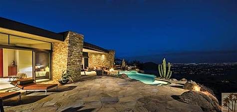 As elevated mountain estate lots become more rare in BIGHORN, a beautiful custom home becomes available on the Mountains Golf Course of BIGHORN. This contemporary design by Prest Vuksic takes advantage of views from every room of the home. Unobstructed down-valley city lights, natural granite boulder outcroppings, Eisenhower Peak morning sun plus Santa Rosa Mountain sunsets. Natural surfaces of quartzite, granite, marble and exotic woods mix with cast glass, zinc and stained concrete to produce a warm contemporary home with fantastic indoor/outdoor living. A firepit lounge by the pool, an outdoor kitchen area with sit-up bar, a pool table with comfy seating for spectators,full surround sound and your own private tee box are just a few details of the outdoor environment. Four bedroom suites, one that can work as an artist studio. Professionally furnished, excludes artwork. Brokered And Advertised By: Bighorn Properties, Inc. Listing Agent: Lorna Ralph Ball
