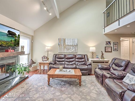 Lovely 4 bedroom, 3 full bath, 2300 square foot Contemporary A-Frame in desirable West Freehold. Main floor offers a soaring two story living room with gas fireplace. A designer kitchen with breakfast bar, granite countertops, stainless steel appliances and Travertine tile floors: plus a master bedroom with full bath and French door leading to side yard: plus an additional bedroom or family room. Sliding doors to a very private yard from eat-in dining area. 2nd floor offers a new full bath and 2 addition bedrooms. This family neighborhood is within walking distance to Freehold Township middle & HS and the community pool club. Blue Ribbon School district.