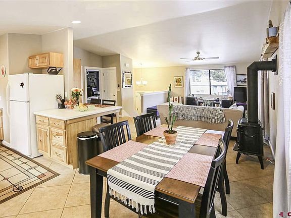 Charming 5 bedroom 2 bath home nestled on a wooded lot that borders open space.This home features the popular open concept living/dining/kitchen design. The main level has windows galore providing an abundance of natural light and vaulted ceilings. The living area on the main level has a freestanding gas fireplace to take the chill off the cool evenings.The kitchen features hickory cabinets including a pantry, solid surface countertops, a 5 burner gas range and a breakfast bar. A spacious dining area is adjacent to the kitchen and has access via a french door to a large back deck which is the perfect place for outdoor entertaining and barbecues. There are 2 bedrooms on the main level including the master suite which has private access to the full bath and a large closet. The second bedroom on the main level has 2 closets. There is a large linen closet with a sliding barn door. The lower level of this adorable home has a spacious family room with a freestanding gas fireplace (makes the perfect media room) and 3 additional bedrooms and another full bath. The spacious utility room is on the lower level and has hickory cabinets, tile floors and a tankless gas hot water heater/boiler. There is efficient in floor radiant heat with 4 independent zones on the main level and baseboard heat in the lower level. You will love the big fenced back yard that borders open space so you have additional privacy. The beautiful back deck is the perfect spot to relax and unwind and enjoy the star lit skies. There is a 10x7 storage shed to store your yard tools, bikes, etc. Beautiful 5 bedroom homes in this price range are hard to find so don't wait to come see this one! There is a park and playground in the neighborhood. Downtown Durango is just 10-15 minutes away. Some of the photos have been virtually staged.