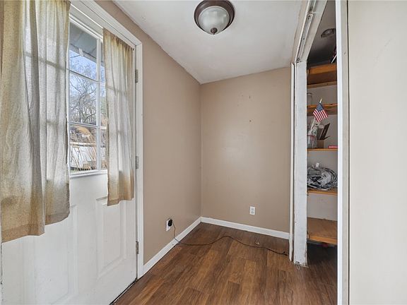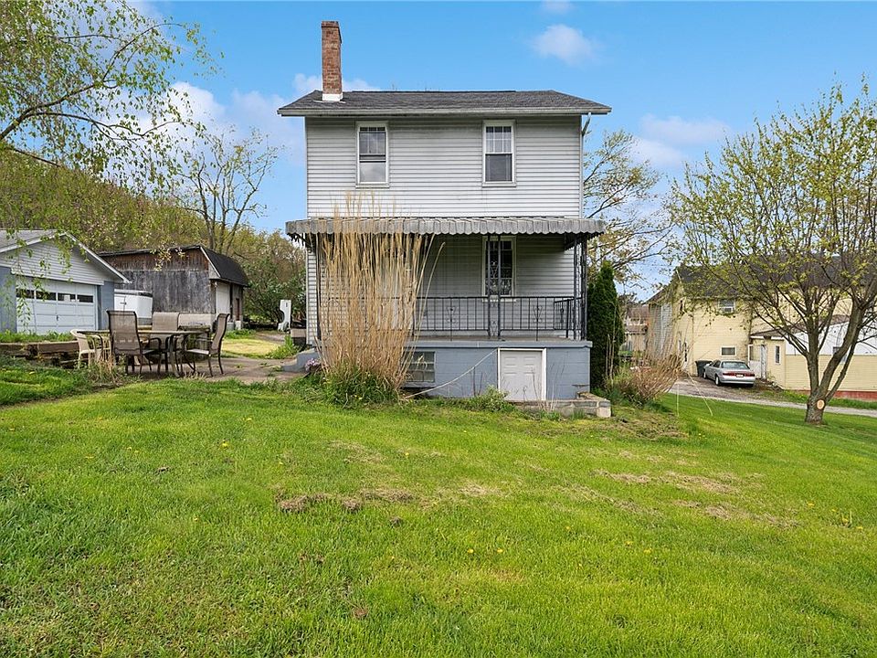 Spacious 2 story home with an amazing yard, covered front porch and a two car detached garage. Large living room, lots of natural sunlight. Main floor also offers a Full bathroom and Side door entry area with closet- perfect for your coats & shoe collection. Updated- Eat-in-Kitchen large enough for a table and comes with an island with additional seating. 3 bedrooms upstairs with ample closet space. Unfinished basement- washer & dryer included.