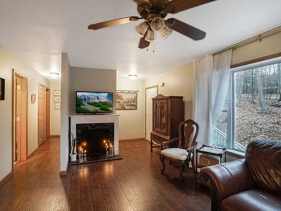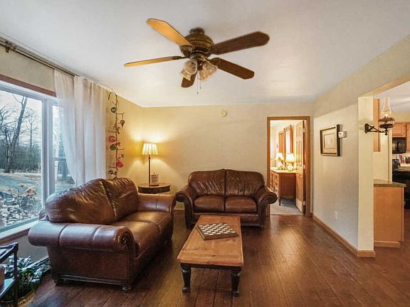 TURN-KEY RANCH WITH PRIME LOCATION!Located in the desirable Pocono Mountain Woodland Lakes community, this beautiful 3 bedroom, 3 bathroom home is spectacular! Gorgeous wood laminate floors glow throughout, having the look of authentic hardwood, durable and easy to maintain! Open floor plan is fabulous with an elegant living room leading to a spacious kitchen w/ walk-in pantry, beautiful dining area and easy to access laundry room. The large master ensuite offers relaxation and rejuvenation with a huge walk-in closet and light and bright master bathroom! Find two more big bedrooms and a full bath on the opposite side of home. The enormous finished basement can be used as a grand guest quarters with full bathroom, family room and bonus room! Sits on 1 acre! Deck! See 3D Virtual tou