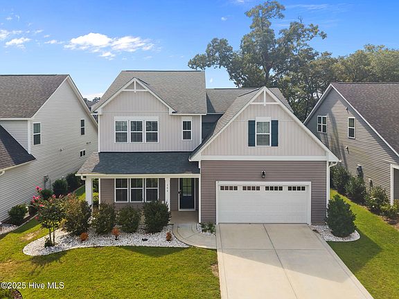 Live the coastal lifestyle in this meticulously maintained 4-bedroom, 3.5-bath home with 2,942 sq. ft. of living space designed for both everyday comfort and entertaining. Tucked away on a quiet cul-de-sac street, this home welcomes you with a relaxing covered front porch and foyer that opens to a formal dining room. The well-appointed kitchen features granite countertops, stainless steel appliances, a large island with plenty of seating, and a large walk-in pantry, all flowing seamlessly into the spacious living room with gas fireplace perfect for spending time with loved ones. The first-floor primary suite offers two walk-in closets, a dual vanity, and a large walk in shower. On the second floor, you'll find three bedrooms, two full baths, a bonus/rec room, study, and walk-in attic storage. Enjoy the privately fenced backyard with covered patio, perfect for year-round gatherings. Community amenities include a resort-style pool, clubhouse, sidewalks, and neighborhood events. Ideally located in the heart of Hampstead within the Topsail school district, with easy access to Wilmington, renowned Topsail Island beaches, parks, and the growing local dining scene.
