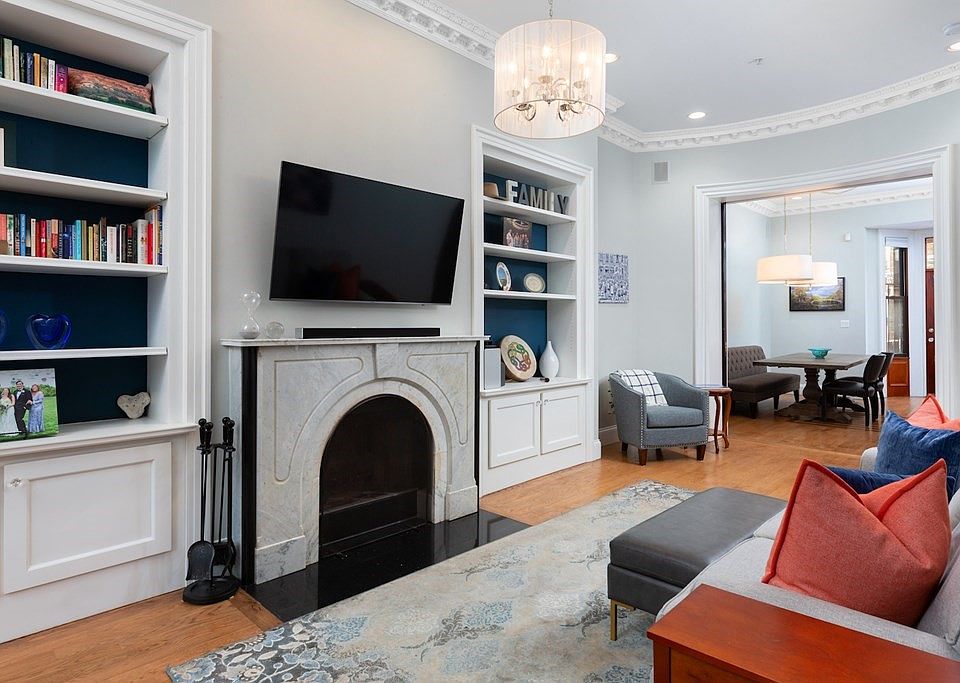 Enter into a gracious parlor level bow front living room with high ceilings, crown molding, hardwood floors and fireplace with original marble mantel. This leads to lovely dining room and gleaming center island kitchen. Features include state-of-the-art stainless steel appliances including 6-burner gas range, granite counters with breakfast bar and beautiful custom designed cabinetry. Step out to quiet rear deck. A handy powder room completes this level. Downstairs are two bedrooms and two baths including huge master with wall of closets and en suite bath offering dual sink marble vanity, soaking tub plus separate walk-in shower. Double doors lead to garden patio and parking. An exceptional home in a top South End location close to all the best shops and restaurants.