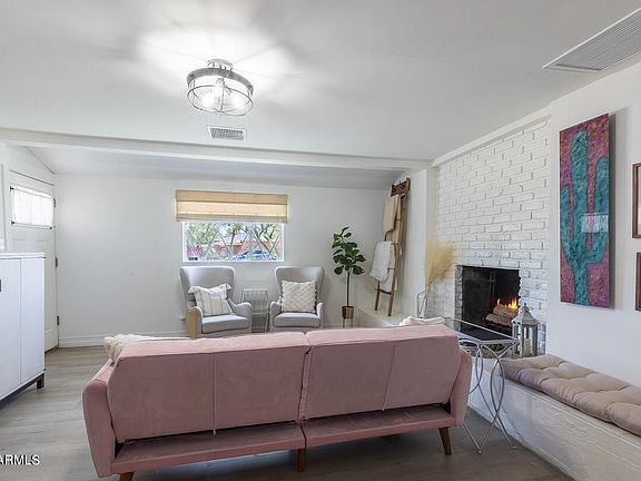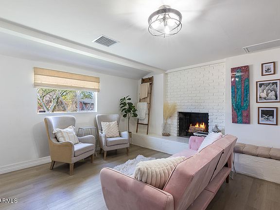 Uptown living in the heart of North Central Phx! This adorable home offers comfortable living w/ incredible upgrades including newer HVAC, kitchen appliances, LTV flooring & a She Shed/Man Cave that is beyond cool. Family room is spacious & cozy with a charming fireplace & room for dining. The kitchen has been upgraded w/ newer stainless steel appliances, lighting, white cabinets & solid surface countertops. Inviting backyard w/ a chill pool offering upgraded equipment as of 2021, refreshed landscaping & large covered patio. The Shed/Cave offers so many options; office, workout room or guest quarters. Amazing location w/ easy access to incredible schools, light rail & downtown. The interior & exterior were painted in 2021. Carport roof replaced in 2024. See docs tab- upgrades & floor pla