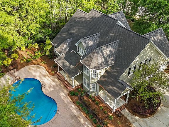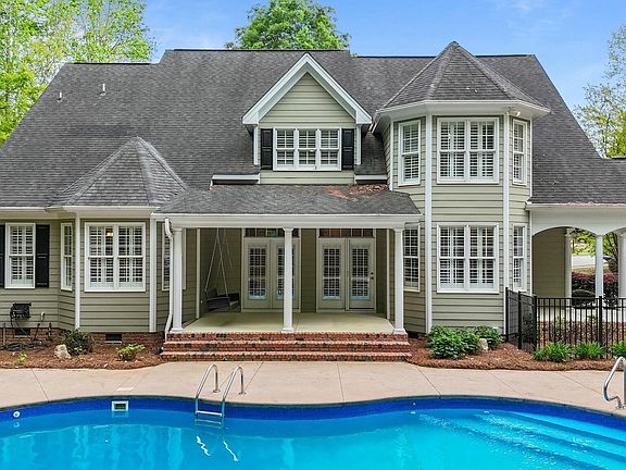 Experience Custom Luxury in Walker Woods Welcome to a true masterpiece in the sought after community of Walker Woods. This beautiful home offers 5 bedrooms, 3.5 bathrooms, and over 3,600 square feet of impeccably crafted living space, designed for those who appreciate the finer things in life. From the moment you enter, you are greeted by extensive hardwood flooring, rich moldings, custom built-in shelving, and an atmosphere of timeless elegance. The first floor features a formal dining room, a private office, a convenient laundry room, and a primary suite complete with dual vanities and an ensuite bath — a perfect retreat after a long day. The breathtaking two-story living room showcases soaring ceilings, a stunning gas fireplace, and dramatic windows that frame the views of your own private backyard oasis. The open floor plan is an entertainer's dream! Step outside to discover your own paradise: a sparkling saltwater pool for endless summer fun, a covered concrete patio with a swing for relaxing in the evenings, a cozy firepit patio, and a fenced, landscaped yard that offers ultimate privacy. The detached two-car garage doubles as a luxurious pool house, featuring a fully heated and cooled finished upper-level retreat complete with a sink, fridge, and half bath — ideal for guests, a home office, or a private studio. Upstairs, you'll find four additional bedrooms, including one with a private ensuite, a versatile bonus room, and a cozy flex space, all offering elevated views of the grand living area below. Thoughtfully designed with every convenience in mind, this home also features insulated doors and windows, plantation shutters throughout, a sealed crawlspace with dehumidifier, a tankless water heater, and a full irrigation system to keep the grounds pristine year-round. Perfectly located, this home offers access to Flowers Plantation, Downtown Clayton, shopping, dining, and scenic walking trails. For commuters, it's a dream location — just 30 minutes to I-95 and approximately 30 miles to RDU International Airport. Homes of this caliber rarely come to market. Indulge in luxury, comfort, and convenience — all in one extraordinary address. Schedule your personal tour today!