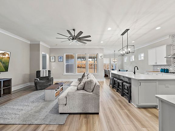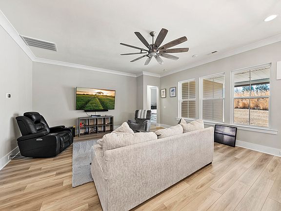 Check out this beautiful Ranch Home in a highly saught-after Flowers Plantation, Forge Creek GATED Community! Open floor plan with 2 beds, 2 Full baths and a LARGE flex space perfect for an office or 3rd bedroom! Beautiful finishes throughout the home! 10 ft ceilings, Chef's Kitchen with plenty of cabinet space, quartz countertops, kitchen island, tons of natural light. Spacious master suite featuring double vanity, tiled walk-in shower, large customized WIC. Spacious covered outdoor patio is perfect for entertaining. Home also has recently installed Solar Panels that save thousands, no monthly electric bill!!! Top notch professionally installed home security system with separate server and multiple cameras throughout the home that transfers to the buyer at no cost! Cat 6 hardwired internet connection in every room. Neighborhood amenities include Fire pit area, Gazebo,Bocce Ball Court, Outdoor Fitness Park, Walking Trails along Pond, Dog Park, Horseshoe Pit. New waterfront district in 2024, along with shopping and dining nearby.