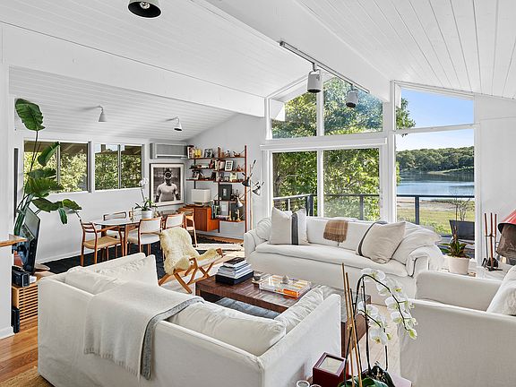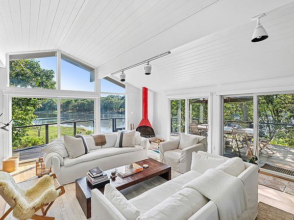 Rental Registration #: RR-25-884 Tucked away on a winding private drive in the heart of Springs, this serene midcentury-modern getaway offers sweeping waterfront views and elevated design. Formerly the home of Sigmund Freud's personal photographer, the house is set on a lush, secluded lot overlooking a peaceful inlet of Hog Creek. The home boasts multiple decks, stylish interiors, and direct access to the best of the Hamptons summer lifestyle.Step inside to soaring ceilings, sun-drenched rooms, and an open-concept living space that flows seamlessly from indoors to out. Walls of glass frame the water and treetops, while curated furnishings and a striking red Malm fireplace add warmth and character. The chef-friendly kitchen opens to the dining area and living room, perfect for entertaining.The home features three serene bedroomsall with sliding glass doors opening directly to the shaded lower deck, ideal for morning coffee or quiet reading. The modern baths are spa-like with a walk-in glass shower, custom mahogany vanities, and chic black Brizo fixtures.Outside, choose between al fresco meals on the upper deck with dining for ten and umbrella shade, or lounging beneath the trees on the lower-level covered deck, complete with plush seating and panoramic views. The landscaped yard leads down to the water with kayaks and paddleboards to take out on the creek, with the private lifeguarded beach on Gardiner's bay and marina access just steps away.Just minutes to ocean beaches, farmers markets, and all the local favorites of Amagansett and East Hampton Villagethis is the quintessential Hamptons summer escape.Highlights:3 bedrooms, 2.5 bathsWaterfront setting with panoramic viewsMidcentury-modern design with updated interiorsExpansive upper and lower decks for lounging and diningCentral AC, high-speed Wi-Fi, and all modern amenitiesClose to bay beaches, kayaking, and nature preservesAvailable for select summer weeks., all of August through Labor Day and beyond. Inquire for specific availability and pricing.