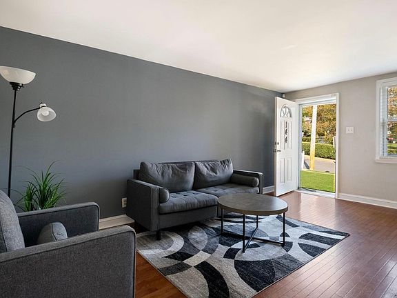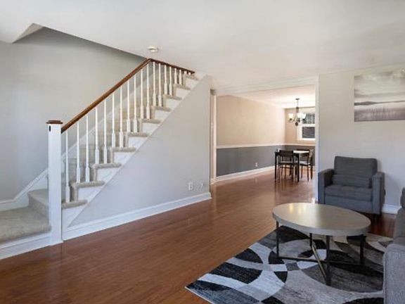 Price just reduced!! Come and see this beautiful, upscale brick townhouse with front patio, 3 bedrooms and 2 full baths on a quiet, welcoming street. The 1st floor, with hardwood flooring throughout, has a living room with a widened entrance into the dining area. Kitchen has been updated with granite counter tops, has a half wall offering a more open view with the added bonus of extra counter space! Kitchen, which features a breakfast bar, extends to the sprawling back upper deck that overlooks the backyard. The 2nd floor has a renovated full bath and 3 bedrooms. Master bedroom has hardwood floors. The steps and upstairs hallway feature brand new carpeting! Basement offers a finished area with a large full bath, a separate area for laundry and access to backyard and off-street designated parking that can accommodate 2 vehicles. Basement is perfect for entertaining or as a sports sanctuary! Garage is available for extra storage. This is a bustling location close to highways, shops and a park!