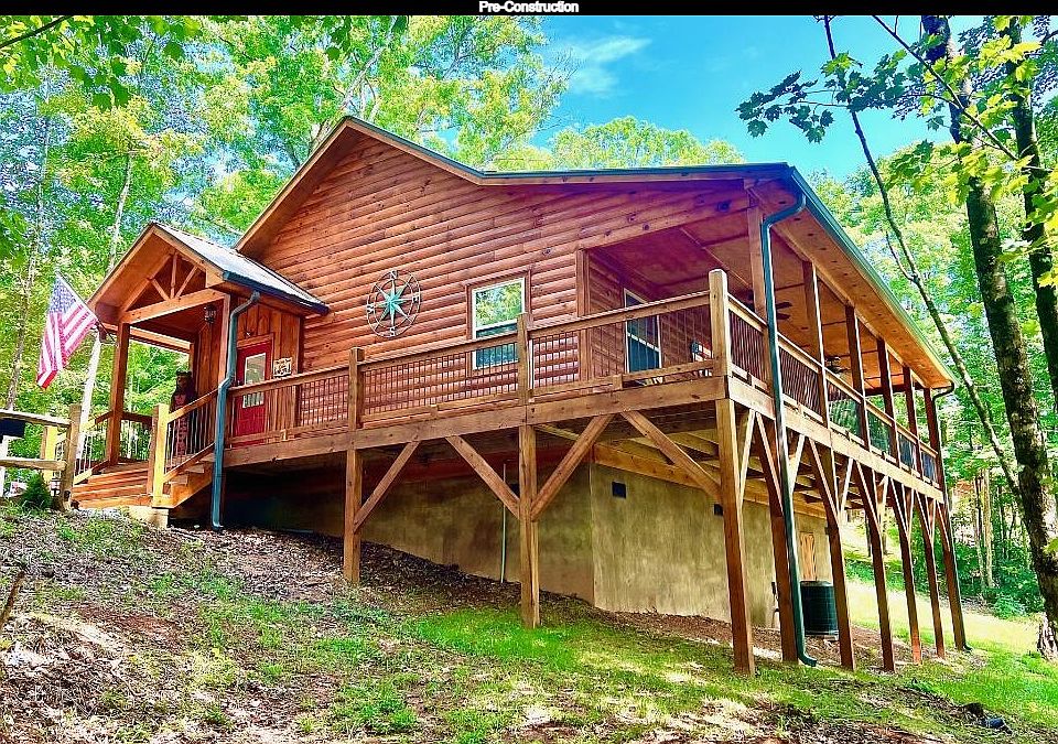 Pre-Construction Cabin in an upscale cabin community of Cherokee Oaks. 2/2 Cabins will include. Hand Hewn Log Siding, Metal Roof, Gutters, Full Cover deck. All wood Interior with tongue & groove wood ceiling. Yellow Pine Flooring throughout. Cathedral Ceilings, Stacked Stone Gas Log Fireplace. Bathroom Choice of Tub Shower Combo or Shower/Mix or Match. Custom Built Cabinetry, Granite Counter Tops in Kitchen, and Bathrooms. Kitchen Appliances include Refrigerator, Stove, Microwave and Dishwasher. All Electrical & Plumbing Fixtures included. Central Heat & Air, Private Septic System, and Fiber Optic Community. A few floor plans are available. *Pictures are of a similar cabin in the Community*. Each build will vary.