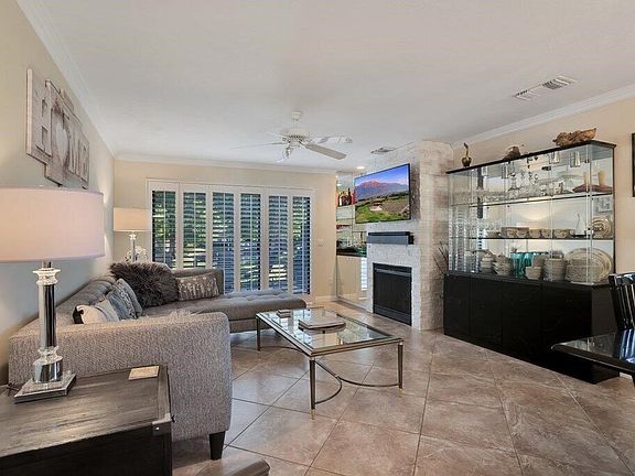 Welcome to the beautifully-intimate Park Palms! Only 100 units in this gated community located in the heart of Palm Desert. This home has been cared for with much love. Great corner location. Private patio off both the living room and master suite which gives views of lake, stream & footbridge to nearby community pool. New crown molding/baseboards & plumbing fixtures. Stack stone fireplace, dry bar w/granite, like-new appliances. Added window in the dining area gives lots of light and a lovely view of desert mountains. Plantation shutters throughout. Two-car garage has built-in cabinets, extra refrigerator, and washer/dryer. Very few come on the market in this community w/clubhouse, gym, pools, jacuzzis, & sports courts. This is a must-see that will not last long!