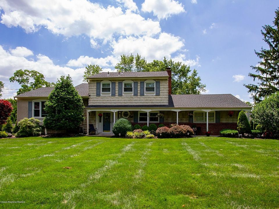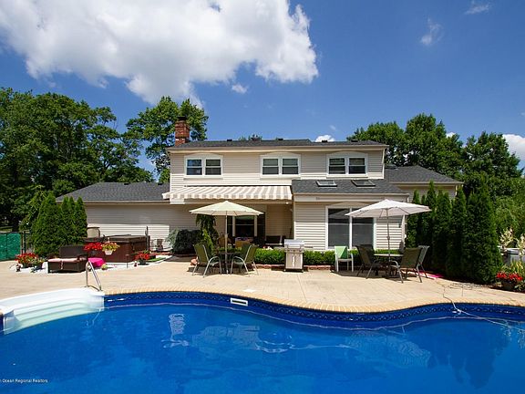 Lovely 5 BR, 2 1/2 bath home located in the heart of Freehold Township, which includes the Freehold Regional School District. Stone tiled entrance leads to a good size living room with HW flooring. A gourmet chef's kitchen is highlighted with Italian granite, cherry cabinets, center Island with ample seating and stainless steel appliances. The warm, comfortable family room is complete with a brick face gas fireplace, bay window and HW flooring. The master & guest baths were remodel several years ago with custom tiled showers, tile floors, granite counters and new vanities. The heated inground salt water pool, with a beautiful custom paver patio, plus hot tub and large professionally landscaped Resort-Like backyard, gives you the feeling your on vacation all year long.
