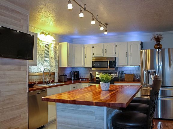 Beautifully decorated and rustic "A" frame unique house. Spacious and private. Sit on your wrap-around porch, or balcony outside the master bedroom to enjoy nature and wildlife. Many updates. Some Natural hardwood floors .The flowing open kitchen/dining / living rooms are great for entertaining. Marvel over the unique counter tops ,cabinets, ceramic back splash and hand crafted butcher block island. Stainless steel appliances , wall mounted flat screen TV in the kitchen ,washer/dryer convey. Enjoy the lower level with a large family room,bath and 4th bedroom for guests or more family.Has Flue . Laundry chutes on Levels 2&3 direct to bsmt utility area. Parking for 3 cars so drive directly up to 1st level. Lovely home Move in ready.