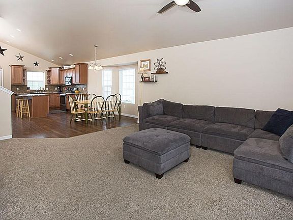 Wonderful home on 15,000sqft lot nestled between the end of the cul-de-sac and 160 acres of State Land! City amenities with the "country" just out your back yard. Built in 2015, better than new with fencing, front landscaping, and fridge included, plus upgraded flooring in kitchen/dining since purchase! Main floor is open with vaulted ceiling throughout kitchen, living and dining rooms. Large master with walk-in closet and own bathroom. 2 more bedrooms and another bathroom on the upper level. Lower level has the electric in, permitted and inspected, and open building permit paid to finish off the basement. Laundry room is also roughed in for bathroom. Spacious 2 car garage with separate garage doors.