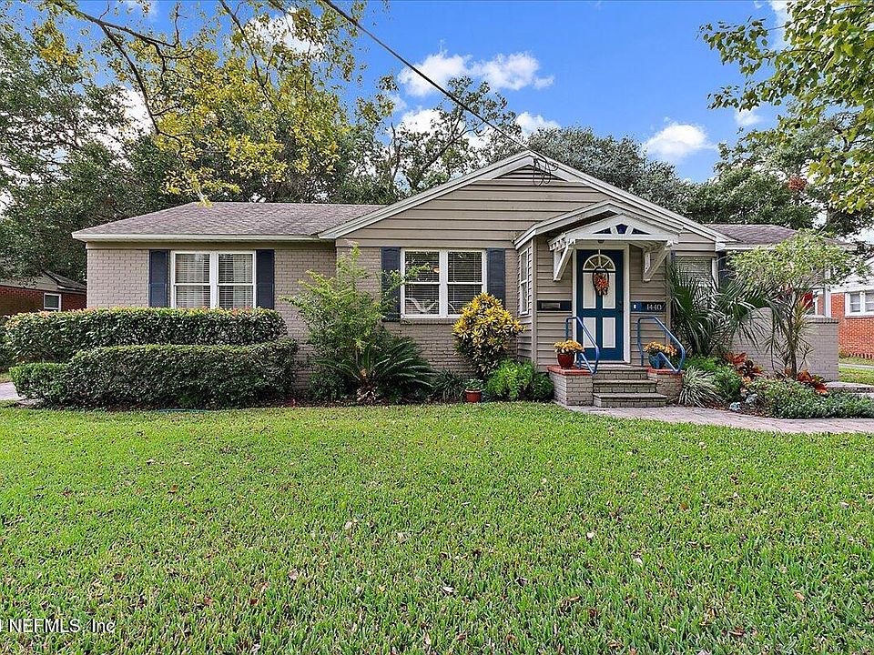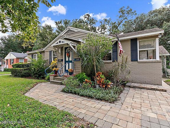 Precious brick bungalow located in sought after Miramar steps away from San Marco. Offering lovely wood flooring and an open kitchen area with all appliances remaining. A flex space is an additional bonus to create a third bedroom complete with closet and half bath or an office or man den.Enjoy the covered back porch with swing and fenced yard with a detached garage/ work shop.A Pavered drive and extra parking area and a new septic system only a few of the upgrades that make this a special home retreat. Detached garage sold in as-is condition
