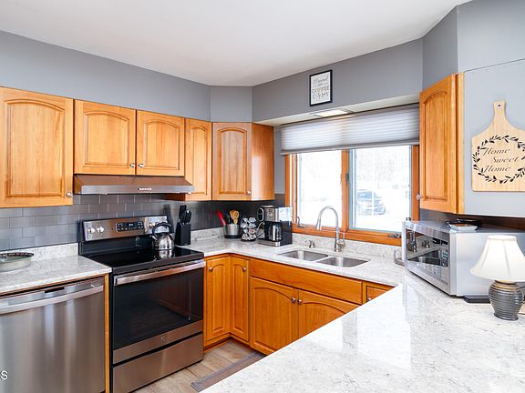 Welcome to this charming and updated home in Valley City, ND. This 3-bedroom, 2-bathroom property features a metal siding, updated windows, main floor laundry, a natural gas furnace, and an AC unit for year-round comfort. The kitchen has been recently renovated with quartz countertops, new cabinets, and stainless steel appliances. The basement is fully finished and offers a large family room, non-conforming bedroom, and a 2-person hot tub. The attached 2-stall garage is heated and has plenty of storage space. It even has a spacious backyard! Don't miss this opportunity to own this lovely home!