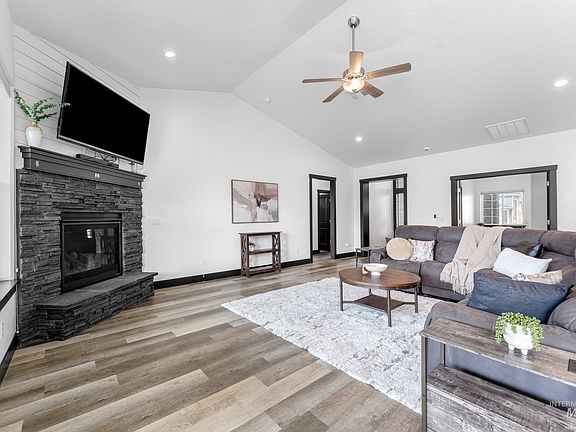 This beautiful single-level home, built in 2022, offers 4 bedrooms, 2.5 bathrooms, and 2,202 sq ft of thoughtfully designed living space. Inside, you’ll love the open-concept layout with 10-foot ceilings, oversized windows, and engineered hardwood flooring throughout the main living areas. The gourmet kitchen features stainless steel appliances, quartz countertops, an oversized farmhouse sink, breakfast island, and walk-in pantry—perfect for everyday living and entertaining. The private primary suite includes two spacious walk-in closets, dual vanity, and a floor-to-ceiling tiled shower. A split-bedroom floor plan ensures comfort and privacy for everyone. Step outside to enjoy a fenced yard with landscaping, sprinklers, and a covered patio ideal for relaxing or entertaining. The attached two-car garage includes an additional 31' RV bay, offering plenty of room for toys, storage, or even a home gym. This home is truly move-in ready and combines modern finishes with thoughtful design in a great location!