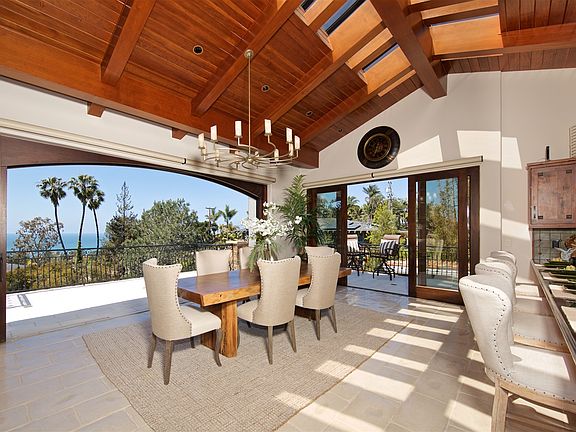 Coastal Resort Oasis famously designed by award-winning firm Bokal & Sneed! Multi-level contemporary Mediterranean w/cascading pools, secret waterways, palm-lined sandy pathways & a perch that enjoys Del Mar sunsets over the Pacific. With 4 ensuite bedrooms, wine cellar, home gym, salt water aquarium, romantic outdoor spa tub, separate house for massage & yoga, its pure Zen at home. Warm wood ceilings adorn stunning living areas which lead seamlessly to breezy verandas with views... Come home to Paradise!