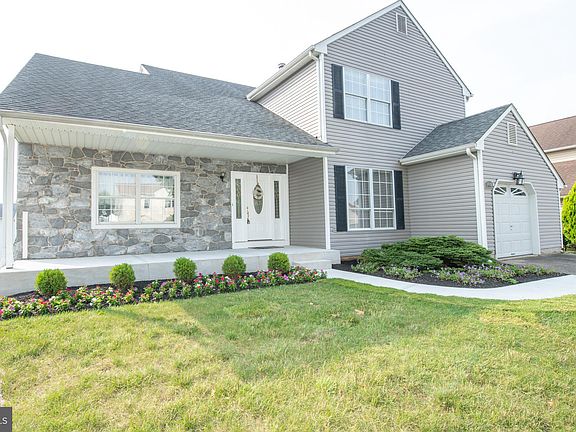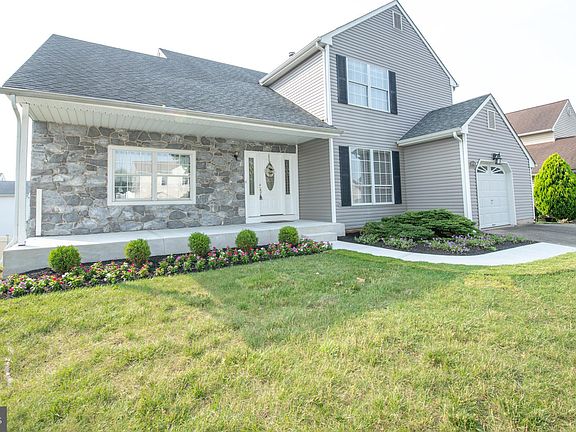 Welcome Home to this beautiful Neshaminy Model in the highly sought-after neighborhood of Village Greene. The largest model built by Stein Builders captures all the modern features for today's buyers. Situated on a nice size lot on a cul-de-sac giving you that calm of the burbs that is so highly desired. Enter the steel door with doorlight insert to an open foyer with dark wood plank flooring, your eyes immediately go to the living room's cathedral ceilings that flow through to the dining room. To your immediate right is a perfectly situated private office space with a bay window and French doors for the importance of privacy while working. Sunlight drenches the first floor bouncing off the neutral paint throughout. A chef's delight will be had in the ultra-modern eat-in kitchen complete with granite countertops, a built-in microwave, a gas burner cooking/oven, stainless steel appliances, and the must-have pantry. Enjoy your gatherings around the kitchen table overlooking the family room with wood burning fireplace and sliders to the outdoor trek deck with stairs to the rear yard. This first floor is complete with a half bath, inside access to the garage, and an expanded full laundry room. Upstairs you will find your sanctuary in the primary bedroom, vaulted ceilings, walk-in closet, en-suite four-piece bathroom, vanity, separate stall shower, and soaking tub just perfect relaxation after some long days. This second floor features three (3) other full-size spacious bedrooms, a true four-bedroom home that shares a full-size hall bathroom. This beautifully well-maintained home does not stop here it just keeps going to the entire lower level. Fully finished walk-out basement with tons of sunlight from a wall of windows. Plenty of space for wrap-around furniture or recliners to have that Media room one may have on the wish list. There is a bonus with a wet bar built-in on the wall just across the rear exit sliders to the patio and a nice rear yard. This oversized basement has an additional room featuring pocket glass French doors, wood shelving, and storage that can be multifunctional, a playroom, workout room, game room, study space, or a 2nd office. Lastly, a major convenience of a half bath makes this lower level a complete retreat. The Location, well it is just that. The Location. Tucked away in the suburbs and yet so convenient to transportation, major highways I95, Turnpike, Rail Line, Schools, and Shopping. Professional photos will be uploaded on Thursday. Don't miss this opportunity make your appointment today!