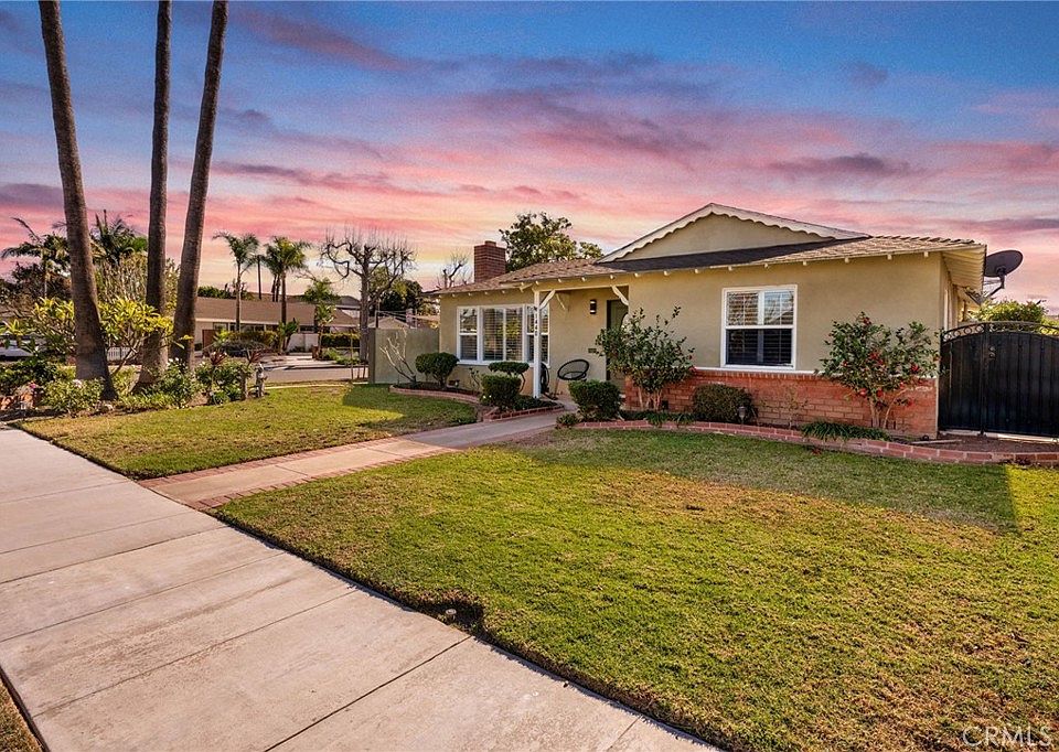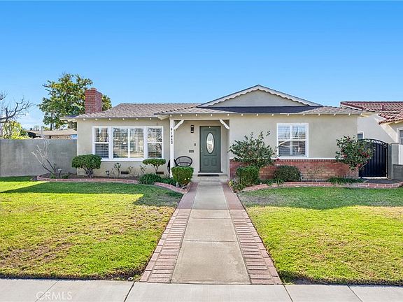 This beautifully upgraded 3-bedroom, 2-bathroom home, plus an adorable casita, offers the perfect blend of charm, functionality, and entertainment potential. The spacious California-style single-story layout is ideal for hosting, with a large backyard featuring two separate entertainment spaces, including a built-in BBQ and teppanyaki-style grill, along with a custom-built fire pit. The casita, complete with shiplap walls, a kitchenette, and 3/4 bathroom, provides a wonderful opportunity for a friend or family member to live nearby or serve as an investment, having previously rented for $1,300/month. There is a separate entrance as well as an outdoor space next to the casita that feels like its own. Some recent upgrades include a completely remodeled kitchen with shaker-style cabinetry and quartz countertops, refinished hardwood floors, remodeled bathrooms, a re-stuccoed exterior and fence, shutters, a new garage door, updated tile floors, custom shelving, new window treatments and baseboards, a custom walk-in shower, split A/C and heating systems, and newer water heaters. The chlorine pool, while unheated, stays warm year-round, making it another inviting feature. This also comes with a driveway and 2 car garage which makes parking easy for everyone. This neighborhood is loved by all neighbors and is in a highly desired area in Orange. This is a unique opportunity you won’t want to miss!
