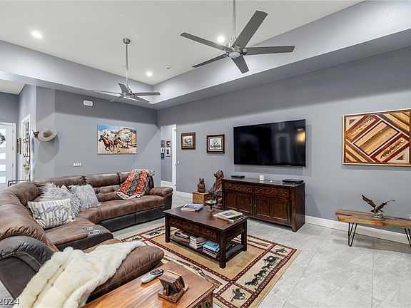 Welcome to 1440 E Gamebird, a one-of-a-kind home located in rural Pahrump Nevada! Are you looking for a home that is just 2 years old and barely lived in? Do you need a RV Garage with hook-ups? Are you a DIY'er looking for garages for all your projects? or do you just need space? The total garage is 1,672 sq ft. Located across the street from the G.G. Sweet Veterans Memorial park, this home sits on just over an acre of manicured land. Offering 4 bedrooms, 4 baths and an office, this highly upgraded home would be your Fortress! Not to far from town, Spring Mountain Racetrack, Wineries, hospital, and VA medical offices this home is sure to please. The commute to Las Vegas is a short 1 hour easy drive. Honestly, you won't ever want to leave!