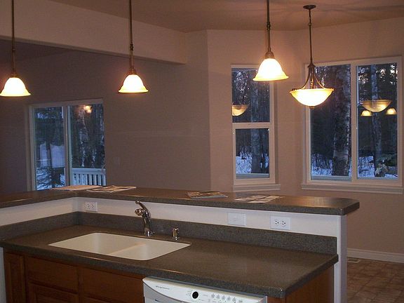 Gorgeous new home! Very open plan w/all beds up, all w/ WIC. Meganite onepiece counter/sinks, gas fireplace, large WIpantry, formal dining, brkfst area, tiled entry. Complete and ready to move in!! Call Kelly for more details 907-775-2021 Neighborhood Description This home is situated in a very nice, quiet neighborhood surounded with new homes. Only 40 minutes from Anchorage and just minutes from the new Mat-Su Regional Hospital. Close to town, yet tucked into nice trees. Easy access to shopping, schools and recreation!