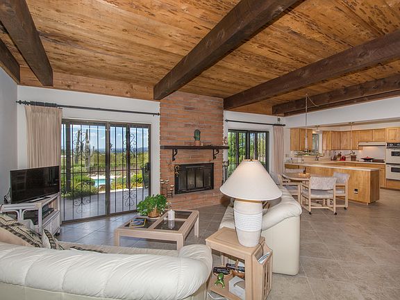 This attractive southwestern style home on .76 acres in the Shadow Roc subdivision, is located on a high view lot with incredible sparkling city light views. Extra s include a self-cleaning pool, rustic wood beams and pecky wood cedar planked ceilings in living room, family room, and patio, abundant ceramic tile floors, low care landscaping and concrete pavers in circular drive and parking area. Note: Master bedroom has 2 walk-in closets, plus a separate office accessible from the Master bedroom. Don't miss the courtyard off the garage, with endless possibilities.