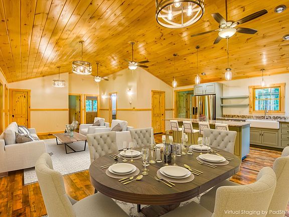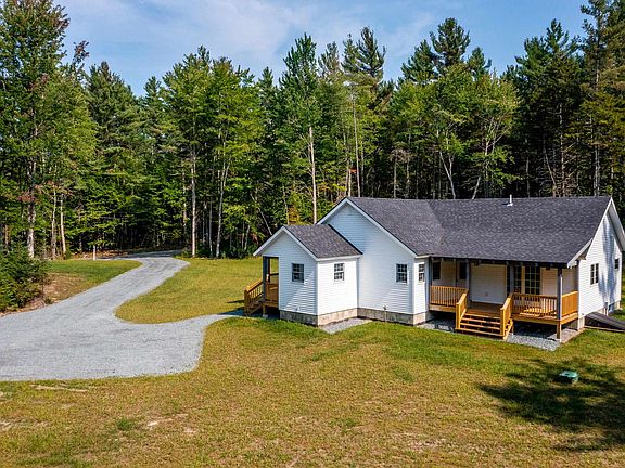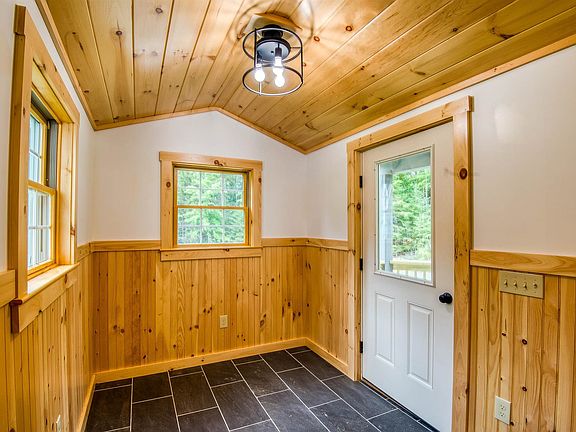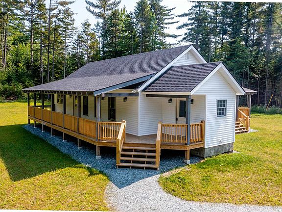 3+/- Acres with brand new custom home built by Coventry. ONE LEVEL LIVING, broad market appeal for everyone with one level living (with steps up to porch, first level) or finish out the full unfinished basement and create additional living space such as rec room, family room, exercise or hobby space. Enter to spacious tiled mudroom then to magnificent kitchen with granite, large porcelain apron front sink, high end appliances and it is plentiful cabinetry space and some open shelves. Open to the dining room, living room with vaulted ceiling, ceiling fans and stylish lighting fixtures-"countryesque" and modern in feel. 2 bedrooms, full bath with hook up for laundry then a large master suite with walk in closet, bathroom with walk in tiled shower and slider door that leads to private covered porch. Wake to the privacy of the yard and the woods beyond! Covered farmers porch will be the chosen spot to hang on a hot summers day or dining and enjoying the quiet, the peace and quiet that comes with living in Easton, NH. Spray foam basement, new construction, efficient, new and easy one level living. Lots of yard area for gardening, fun and frolic! Taxes in Easton are one of the lowest in NH! Multiply those thousands of dollars by a few years and it adds up to SAVINGS! Excellent Schools, small town feel, Loon and Cannon, White Mountain Nat. Forest, Franconia Notch all nearby. We hope some of the virtual staging helps paint the picture for you!
