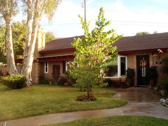 Impressively designed and appointed for gracious living both inside & out, this single level 4BR/2BA pool property on a cul-de-sac lot offers no visible rear neighbors, attractive hardscape, and gated, covered parking for RV or multiple vehicles. Direct-access garage currently configured as workshop, laundry room, and huge walk-in pantry. Open floor plan enhanced by beautiful dual pane windows, sliding & French doors offering serene views of the manicured grounds. Amenities include Spanish paver flooring, new sculpted carpet, crown molding, recessed lighting, ceiling fans, attractive glass & solid core interior doors, mirrored closet doors, in-wall speakers, security system, ample storage. Featured is a cozy sitting room that opens to a dramatic theatre room with vaulted ceiling, gas log fireplace, built-in media center. Don't miss the generous office/crafts room with extended work counter. Enjoy 3 secondary bedrooms, a stunning hall bath, and master suite hosting patio sliding door and ensuite 3/4 bath. Private backyard boasts a heated pool & spa, covered patio, extensive decking, generous BBQ center, plus a gated side yard with grassy play area.
