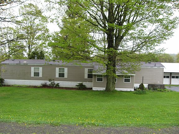 An Incredible Private Peaceful Paradise! Pristine 3 bedroom, 2 full bath 2001 Home. Circular Drive to the home and 4 bay Large Garage with extra storage behind. Cozy and Comfortable. Plenty of Built-Ins for Storage, Walk-In Closets, Large Deck overlooking field with the sound of the rushing waterfall out back. A Generator hook-up on the side of the Garage is also provided!