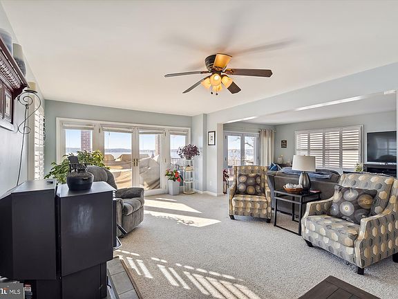 Waterfront! 100' Pier w/ Boat Lift, 3000+ Finished Square Feet, Exquisite Water Views! It's Where You Want To Be!!!! Built in 2005, this beautiful home features an open floor plan with water views everywhere! Wake up to sunrises over the water on the spacious upper level no maintenance deck off of the primary bedroom! Access the 20x 27 main deck and outdoor amenities through the rear wall of windows with French doors! She'll love the ginormous gourmet kitchen with island, pantry, plantation shutters and cabinet space galore! He'll enjoy the large 24 x 30x 12 garage and workspace! Huge amounts of parking for fun with family and friends! If you are looking for life on the water WITHOUT flood insurance, you just have to see this wonderful home!