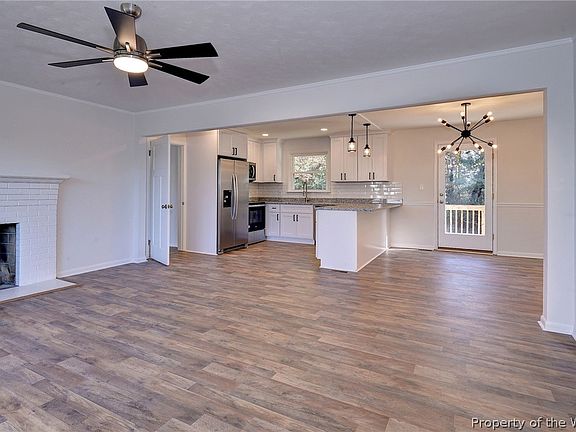 Updated Brick Rancher! New Kitchen, New Bathrooms, New Floor & Fresh Paint!! Family Room w/Cozy Wood Burning Fireplace is Open to the Dining Room and Kitchen w/Granite Counters, New Stainless Appliances and Large eating Bar. The Primary has 2 Closets and an Attached Bath with 2 Sinks, and a Large Tiled Walk In Shower. There are 3 more Bedrooms and a Full Hall Bathroom. Enjoy evenings on the easy access Deck overlooking the Large Flat Fenced Backyard. Move In Ready!