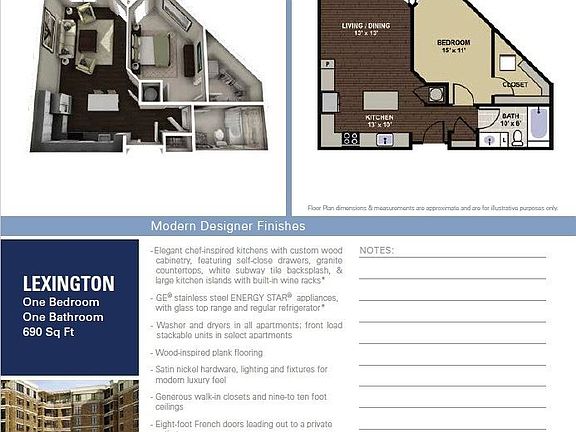 - Total interior livable area: 690 sqft