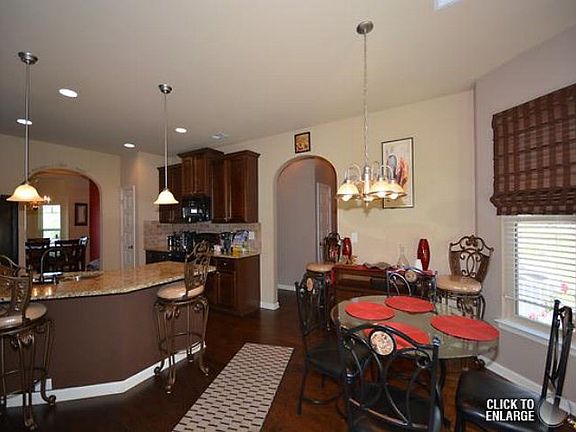 Bring your family home to this marvelous 5 Bedroom residence in Walton Farms, perfect for relaxing and entertaining! Spanning over 3,030 SQFT, this home is graced by extensive millwork, arched doorways and soaring vaulted ceilings. The grand entry-way with dramatic double height foyer draws you into a generous, open layout featuring a formal living room, and formal dining room with coffered ceilings. Enjoy a gourmet kitchen with granite countertops, 42" wood stained cabinets and tile back-splash overlooking the breakfast nook and great room with bar seating. Massive Owner's Suite upstairs includes separate sitting area and two oversized closets. Hardwood floors throughout the home including the formal dining room, living room, kitchen, breakfast nook and great room. Mounted Flat Screen TV in family room, as well as washer & dryer staying with the home. Don't miss out on this is perfectly priced home that radiates quality!